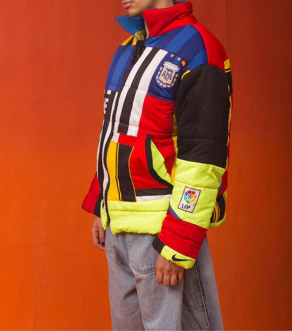 Ésta en una pieza única creada con materiales reciclados exclusivos. Cada artículo es distintivo, sostenible y verdaderamente exclusivo.